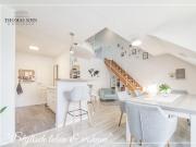 ...rnt und liebevoll und detailverliebt in Wohnraum umgebaut. Heute befindet sich auf ca. 90 m2 eine Wohnung mit neuer Küche, Bad und WC. Die Wohnung hat 3 ausgebaute WG-Zimmer und einen gedämmten und beheizten, sehr großen Raum im DG sowie einen Partyk...