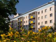 ...Halle. Alle Wohnungen haben einen rückkanalfähigen Breitbandkabelanschluss, Isolierglasfenster und sind an eine Fernwärmeanlage mit zentraler Warmwasserversorgung angeschlossen. Die einzelnen Hauseingänge verfügen über Aufzüge und sind mit einer Tief...