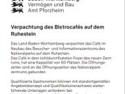 Das Land Baden-Württemberg verpachtet das Café im Neubau des Besucher- und Informationszentrums des Nationalparks auf dem Ruhestein
