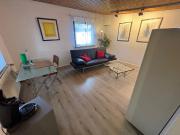 ...Wohnung im Parterre eines gepflegten 2-Familienhauses mit schöner Terrasse und WLAN. Heller Wohnbereich mit gemütlicher Eckcouch, Couchtisch, Kommode, Homeoffice-Arbeitsplatz, Sideboard und Smart-TV. Geräumige, moderne Wohnküche mit Cerankochfeld, Ba...