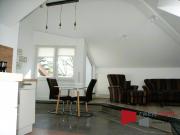 ...Wohnung im 2.OG Dachgeschoss eines Mehrfamilienhauses; im modern eingerichteten Wohn-Schlafraum mit Sofa, Couchtisch, TV-Bank mit Fernseher (Sat-Anschluss), kleines Doppelbett (140×200) und Kleiderschrank; die separate Küche ist mit einem Esstisch mi...